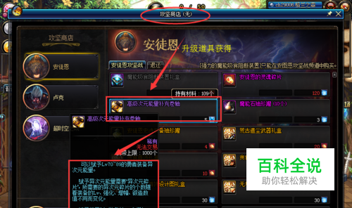 而玩家升级需要拥有“高级次元能量补充卷轴”。玩家可以在攻坚商店的“安图恩”商店中兑换。