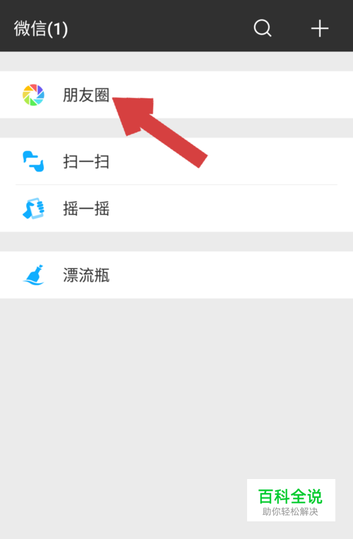 在发现页的第一栏就是我们的“朋友圈”栏,点击朋友圈,进入朋友圈页面。