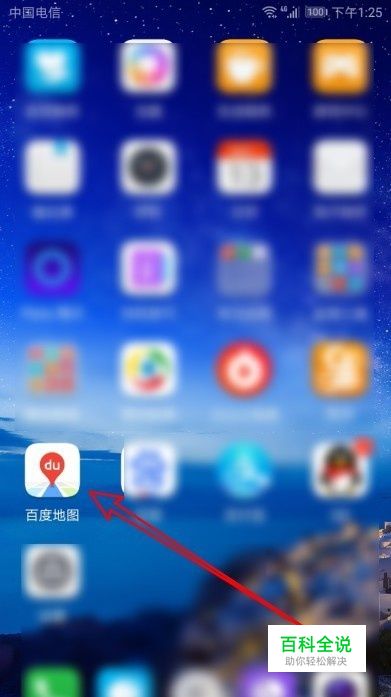 在手机上左右滑动屏幕,在屏幕上找到“百度地图”的图标。