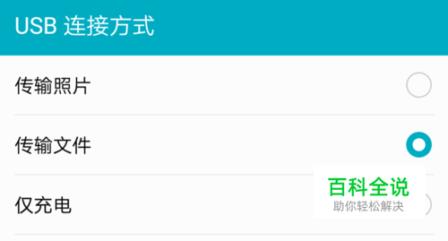 我们把手机连接电脑之后,USB连接方式设置为传输文件。