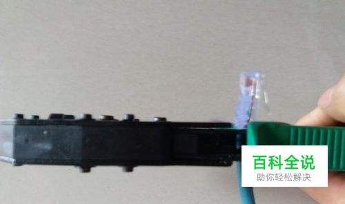 把水晶头放入网线钳内。用力压下网线钳,一端的网线就做好了。