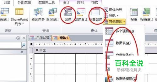 打开“创建”选项卡,然后找到“窗体”,可以通过向导创建,也可以通过设计视图建立。