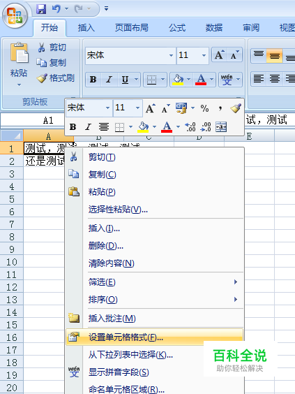 右键点击文本内容过长的单元格,在打开的右键菜单中选择“设置单元格格式(F)...”