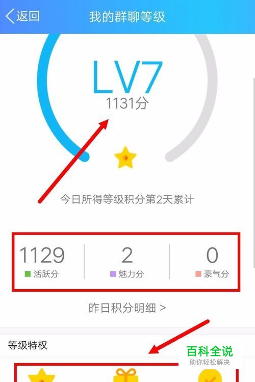 进来以后就可以看到如下画面,我的群聊等级。目前我群聊积分1131分,正好是7级,群聊等级到一定程度还有等级特权!