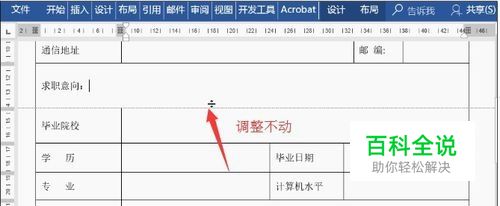 打开一个word表格,拖动调整一个单元格的宽度,会发现拖不动。接下来我们这样操作。