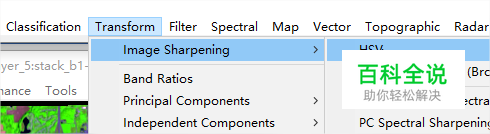 1:用envi打开转换格处理好的数据,选择选择Transform Sharpening--Image Sharpening--HSV→display#1