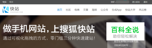 登录搜狐快站。 此方法需要先在搜狐快站内创建网站,APP的显示样式就是微网站的页