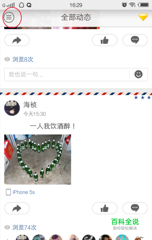 进入到关注的话题里面以后可以看到网友们发的内容,如果要发表内容可以点击发表,如图所示: