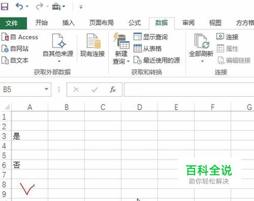 首先打开数据表格,发现单元格设定了数据有效性,只能输入是或者否,如下图所示: