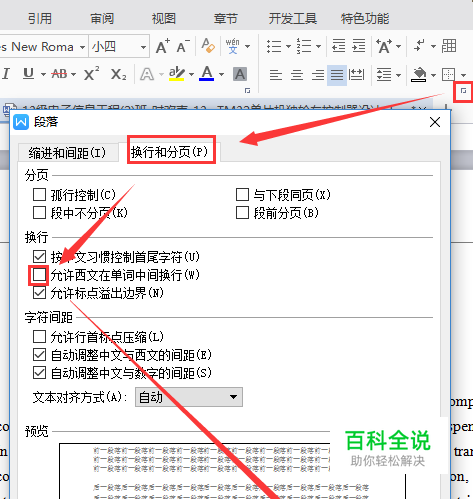 WPS里如何使英文单词在换行时不断开