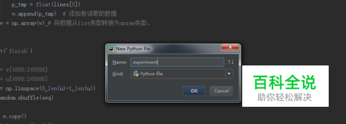 我将工程文件存在了一个叫做pycharm的文件夹下,然后右键点击右边的文件数,新建文件,此时一定要选择python file,然后为python程序命名。这里我将程序命名为experiment.py。下一步就是在新建的.py文件中填写程序啦。