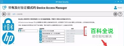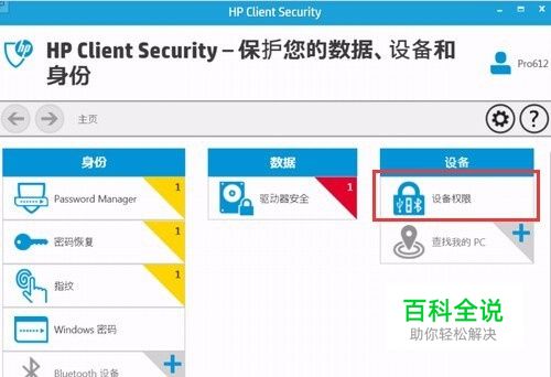 打开HP Client Security客户端,选择“设备权限”;