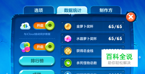 首先,打开保卫萝卜2,点击【小齿轮】,在【数据统计】下,选择【与icloud自动同步打开】
