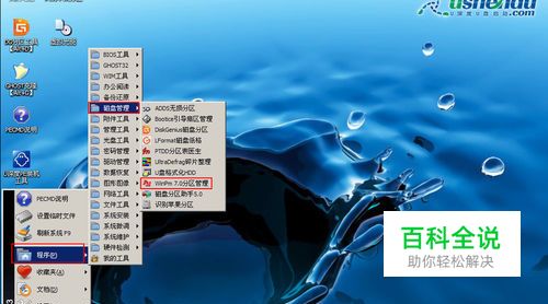 进入03pe体系后,顺次点击“开端-程序-磁盘办理-winpm7.0分区办理”,如下图所示: