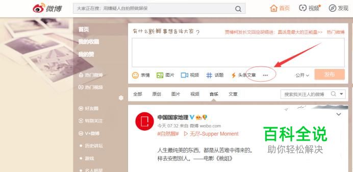 登录进入首页后,在发布微博的位置,找到如下图所示的三个点