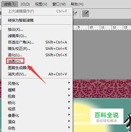 打开图片之后找到滤镜菜单里的油画选项,如图所示: