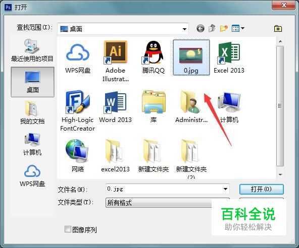 打开ps之后按下Ctrl+O键在弹出的对话框内找到我们的图片素材,如图所示: