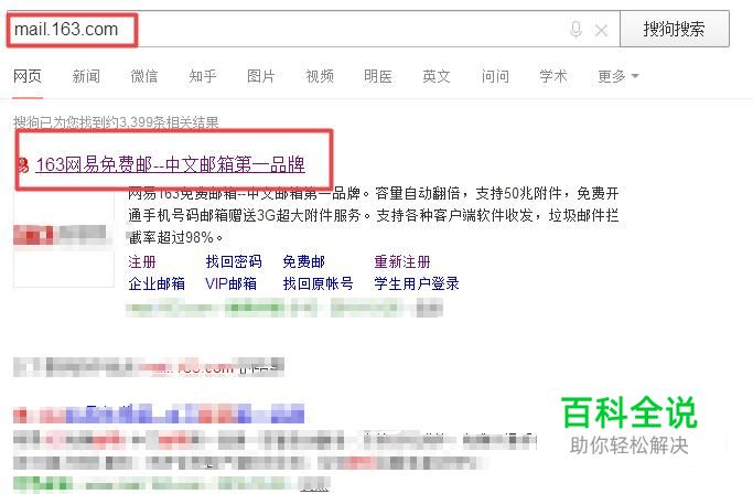 然后我们在搜索框中输入mail.163.com,然后我们按回车键,之后我们点击图示中的网站;