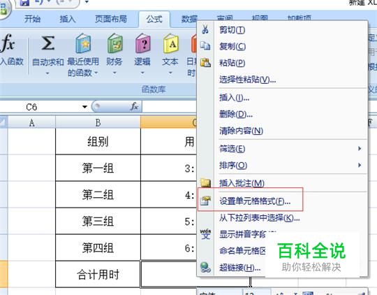 右击合计用时后面的单元格,找到设置单元格式,见下图