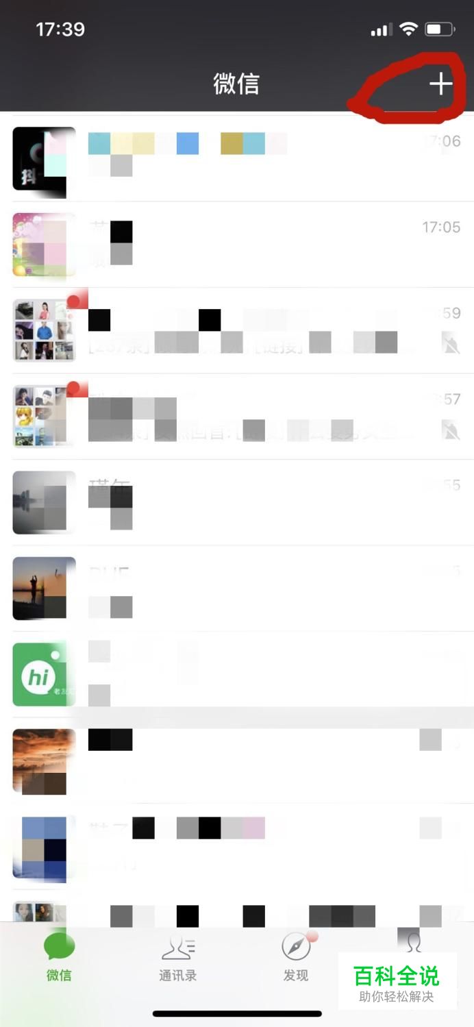 打开手机微信,点击右上角的“+”,选择“添加好友”;