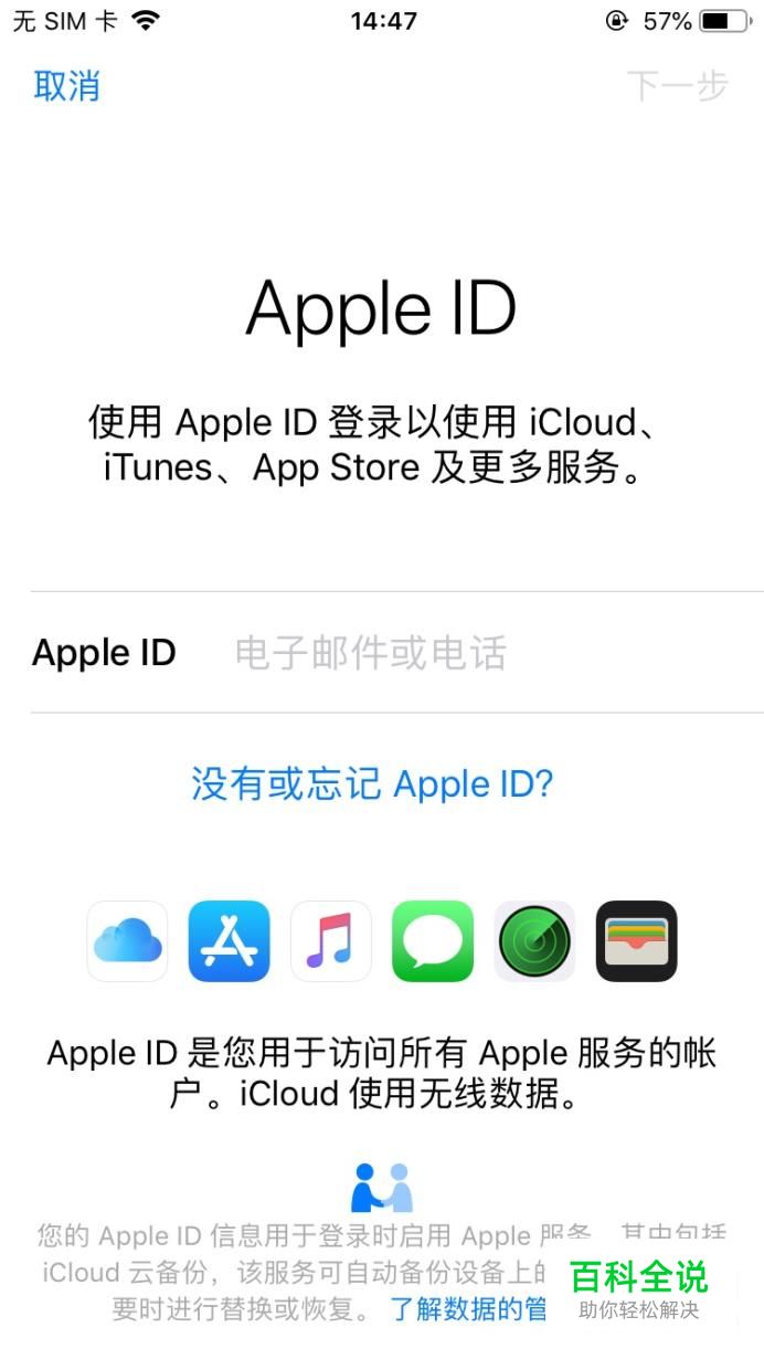 输入个人Apple ID账号,输入完成后点击右上角的“下一步”选项。