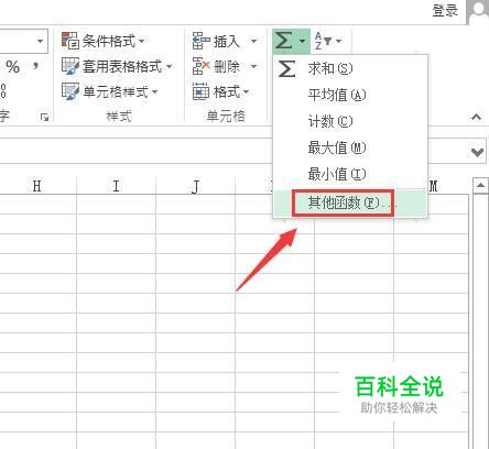 点击自动求和选项在其下拉菜单那里找到其他函数选项,如图所示: