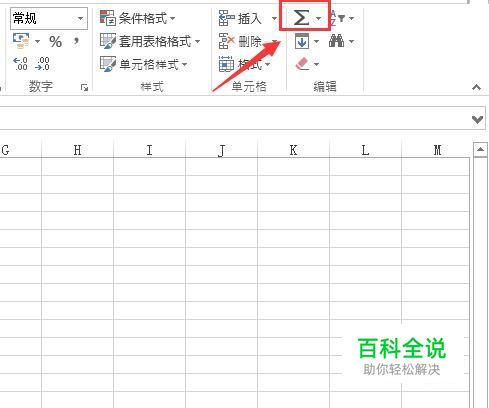 打开excel之后选择单元格,然后在找到自动求和选项,如图所示: