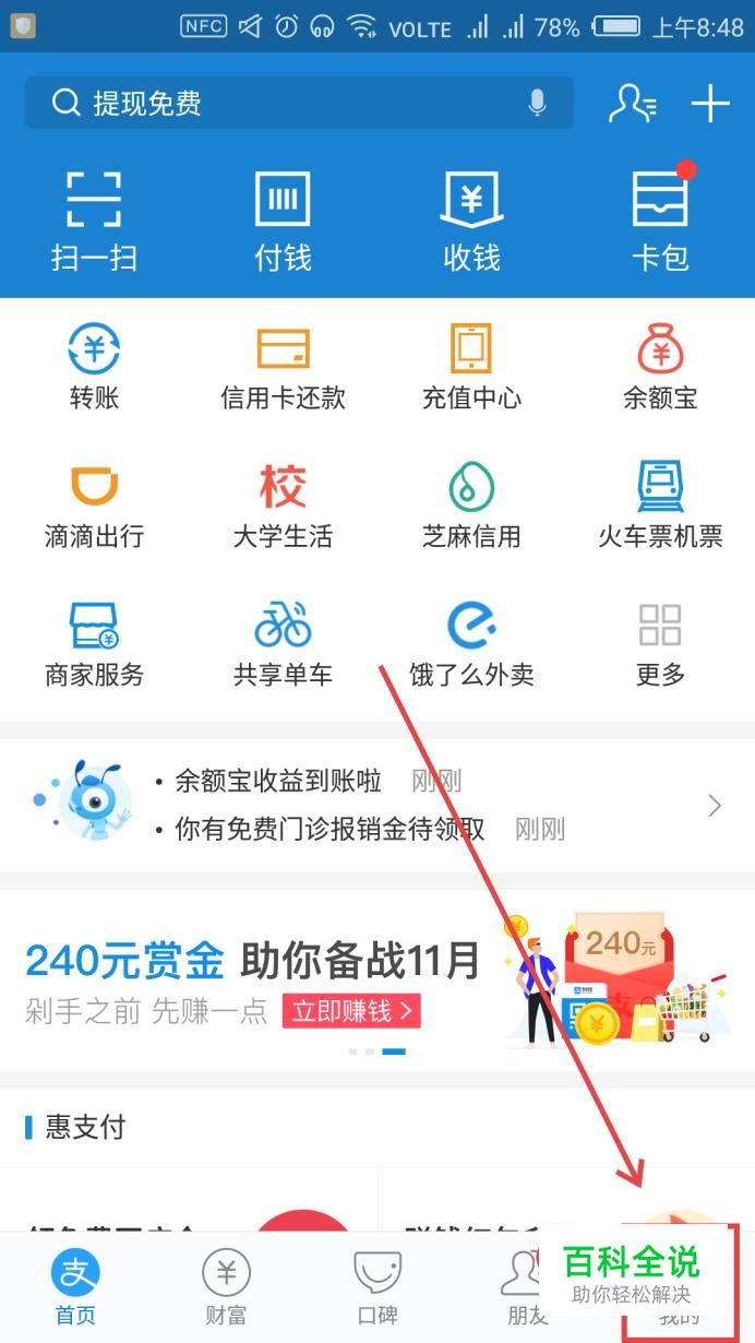 首先打开支付宝,在界面右下角找到【我的】,点击进入。