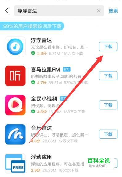 进入之后,搜索“浮浮雷达”,点击下载,如图所示。