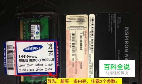 3-然后翻过内存条背面,查看上面不干胶标签参数,内存容量,品牌,主频是否吻合我们的dell戴尔笔记本电脑;