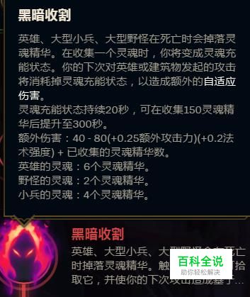 灵魂收割的伤害是跟你刷野的多少挂钩的,不过你击杀敌人也会收集到他们的灵魂,所以想要做的一击必杀除非你杀人多刷野多。