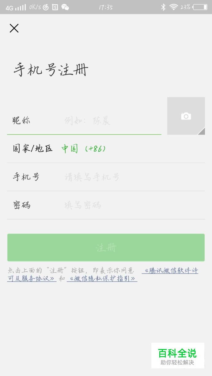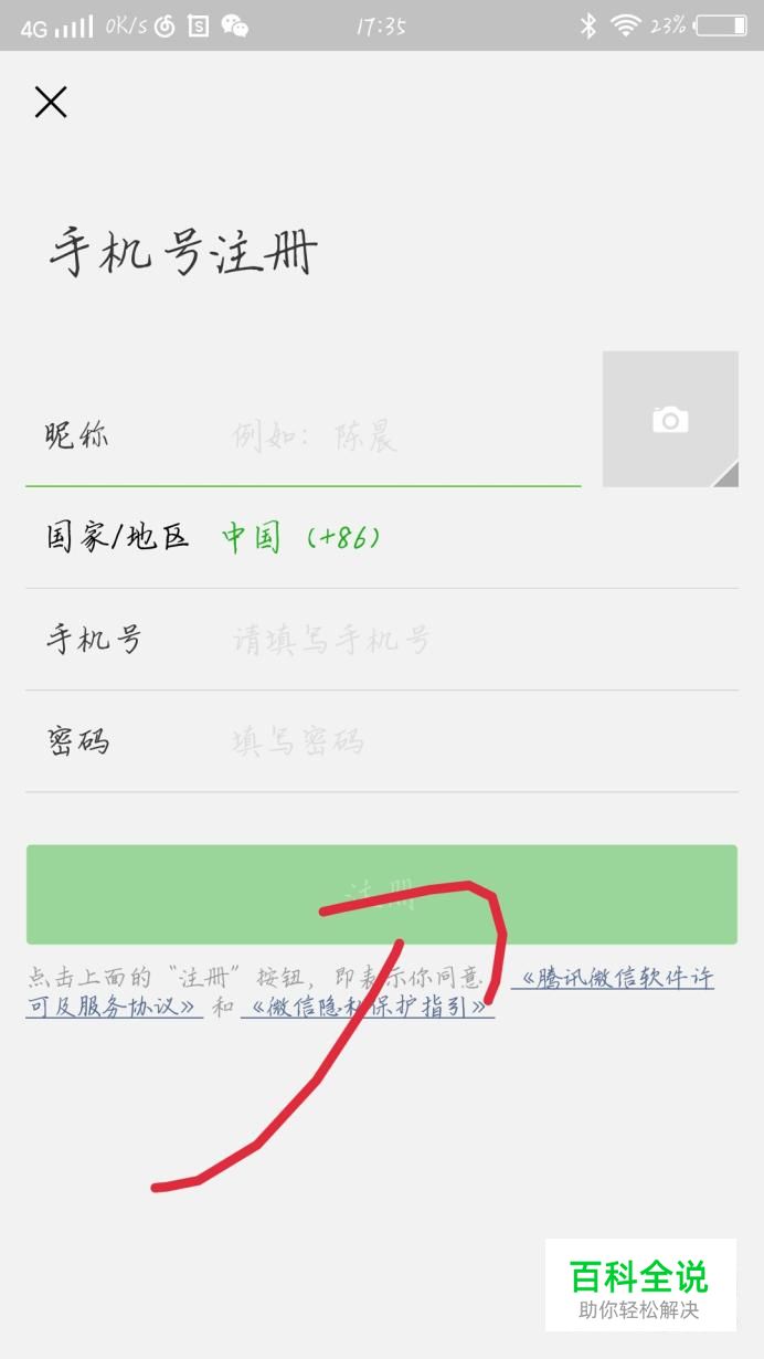 输入你微信的昵称,手机号,以及密码,点击注册就可以了。如图1箭头所示。注册完之后就可以登录了。