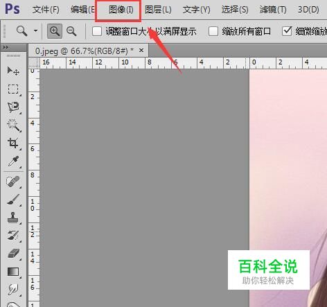 打开图片之后在ps的菜单拉里找到图像选项,如图所示:
