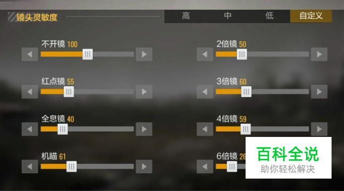 进入之后,对于镜头灵敏度设置,将2倍镜设置为50,全息镜设置为40,如图所示。
