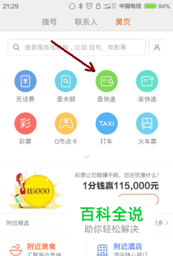 选择“查快递”,然后输入快递单号,如下图
