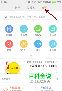 打开手机,进入小米黄页:打开拨号界面,选择上方的“黄页”,如下图
