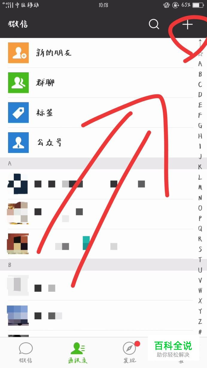 首先点击打开微信软件。进入软件首页,点击右上角的“+”图标。