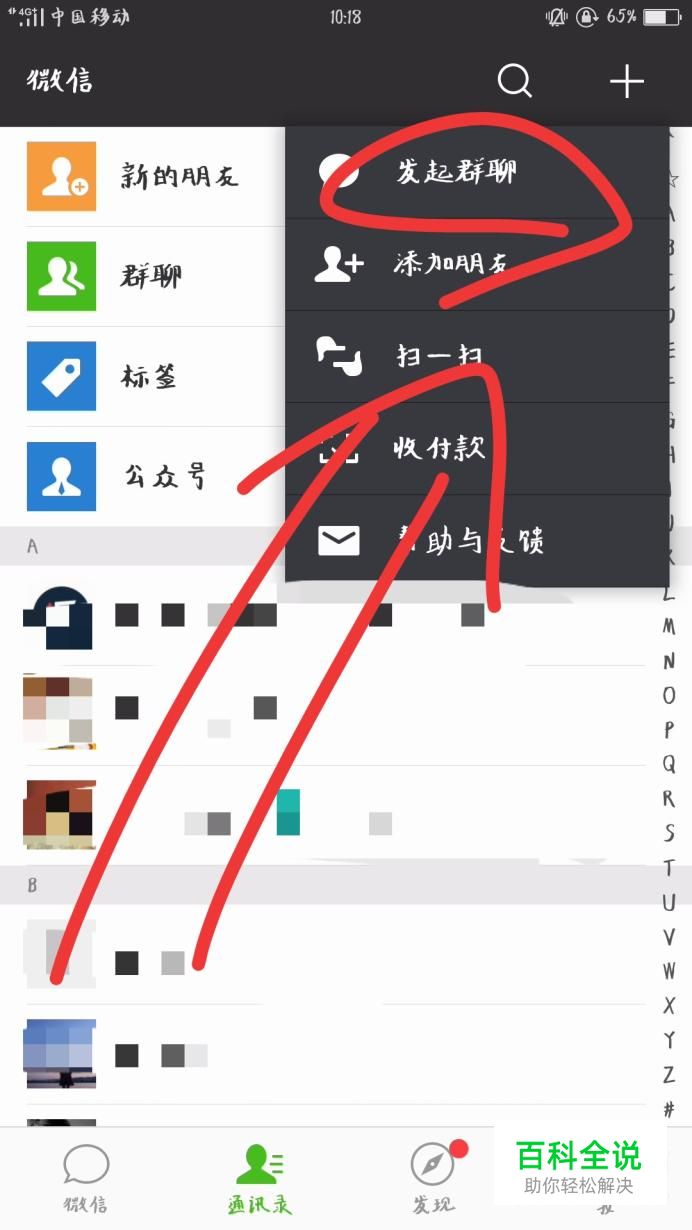 点击选择下方第一个“发起群聊”选项,如下图。