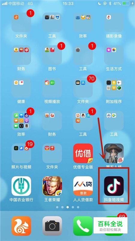 首先在我们的手机桌面上找到抖音短视频,并点击它,如图所示。