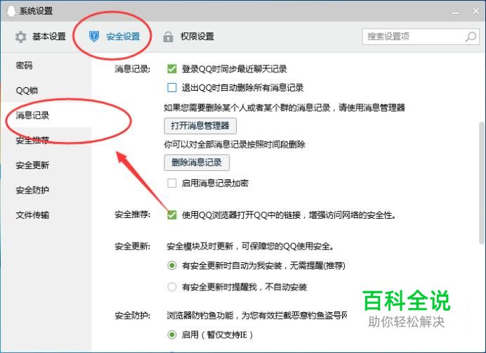 消息记录 切换到【安全设置】选项卡,点击【消息记录】,如下图所示: