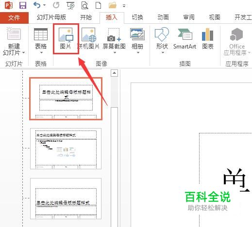 点击幻灯片母版选项之后,再找到插入菜单里的图片选项,如图所示: