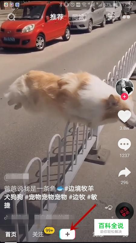 先登陆你的抖音号,进入别人的主页或者是自己的主页,点底部的+号,进行拍照。如图所示。