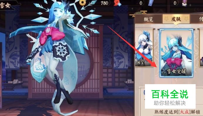 如果式神的熟练度达到一定的程度,就可以解锁免费的皮肤,如图所示。