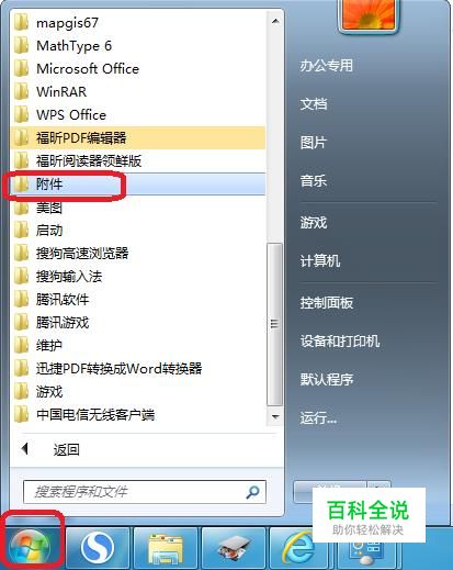 首先,我们点击开始菜单,点击“所有程序”,然后找到“附件”,点击打开。