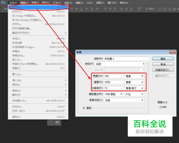 通过“文件>新建”命令,快速的建立一个新的文档。