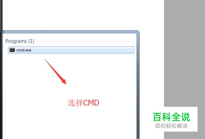 首先点击桌面左下角的开始菜单,在弹出的界面中选择cmd.exe选项,如下图所示