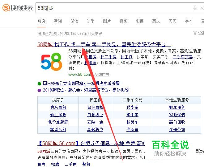 进入之后,搜索“58同城”,点击并进入,如图所示。