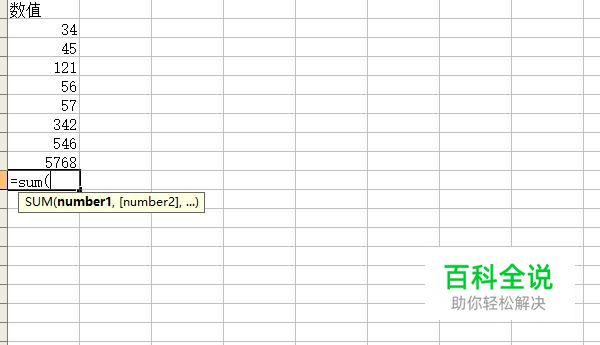 输入计算总和的公式“=sum(”