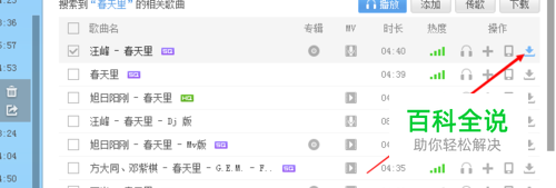 我们选择需要下载的音乐,点击‘’下载‘’按钮。
