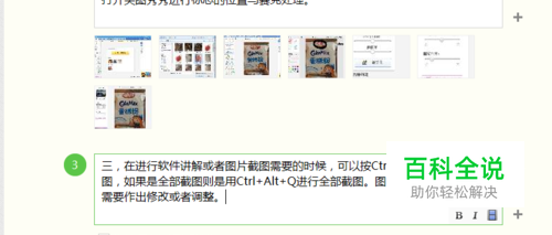 三,在进行软件讲解或者图片截图需要的时候,可以按Ctrl+Alt+A,进行局部截图,如果是全部截图则是用Ctrl+Alt+Q进行全部截图。图片保存好之后再根据需要作出修改或者调整。